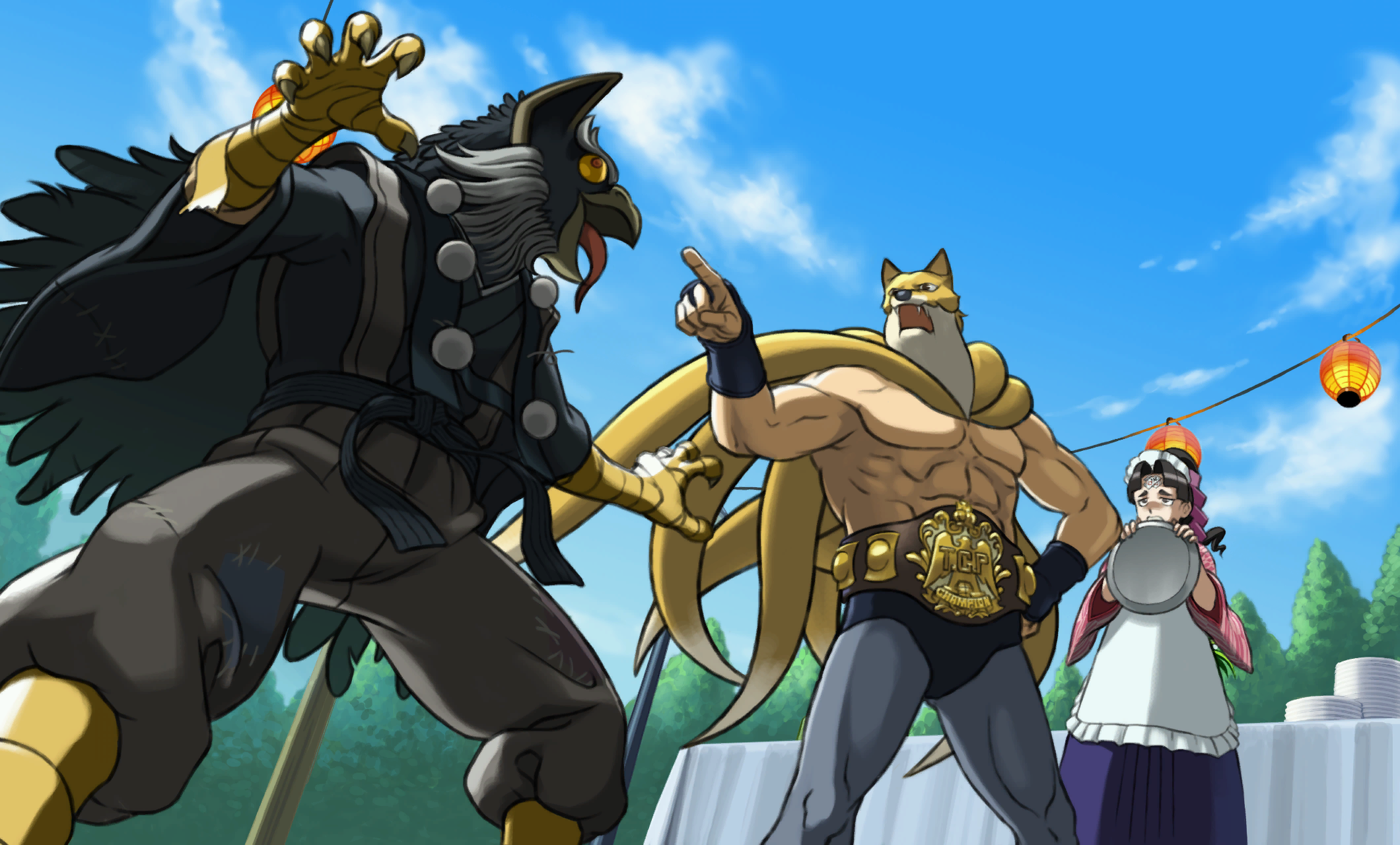 | A cool event features the Amazing Nine-Tails, a popular wrestler who is actually Damien Tenma of Tenma Town and not Rex Kyubi as most people suspected, as he confronts the evildoer Tenma Taro. |